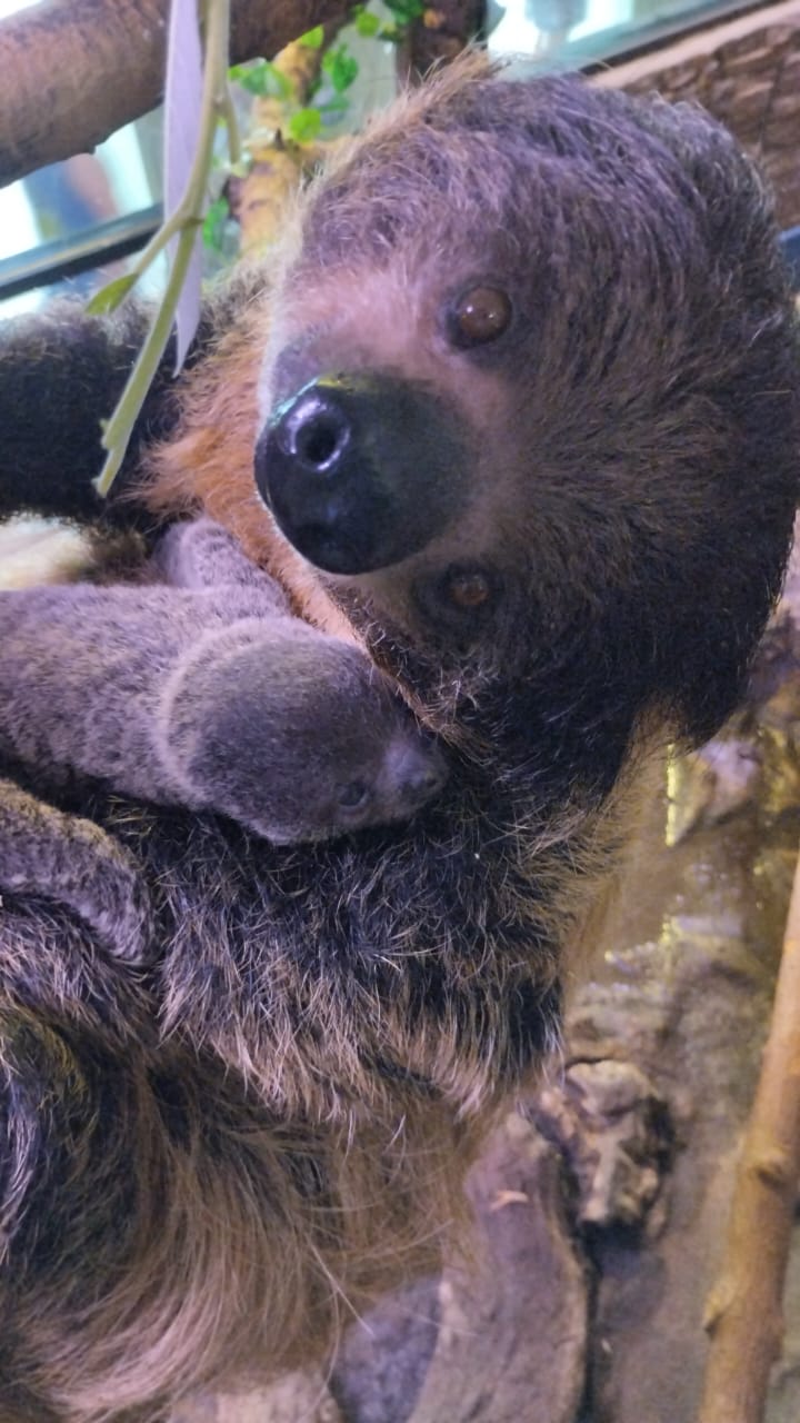 Сейчас маленький ленивец все время держится за маму и питается ее молоком, но уже проявляет интерес к «взрослой» пище – особенно его привлекает листва.