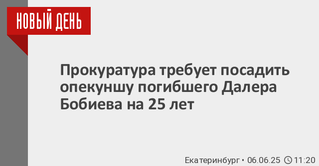 В Свердловском областном суде прошли прения по делу о гибели 5-летнего Далера Бобиева. Обвиняемыми по делу проходят опекунша мальчика Вероника Наумова и ее 22-летний племянник Даниил Егольников.