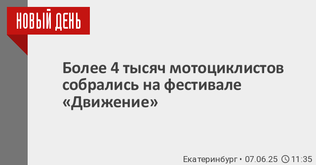 В Екатеринбурге стартовал фестиваль мотокультуры «Движение». В течение двух дней гости и жители города увидят выступления спортсменов-экстремалов и концерты рок-групп. По данным организаторов, в фестивале принимает участие более 4 тысяч мотоциклистов.