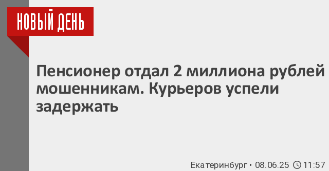 Пенсионер отдал 2 миллиона рублей мошенникам. Курьеров успели задержать