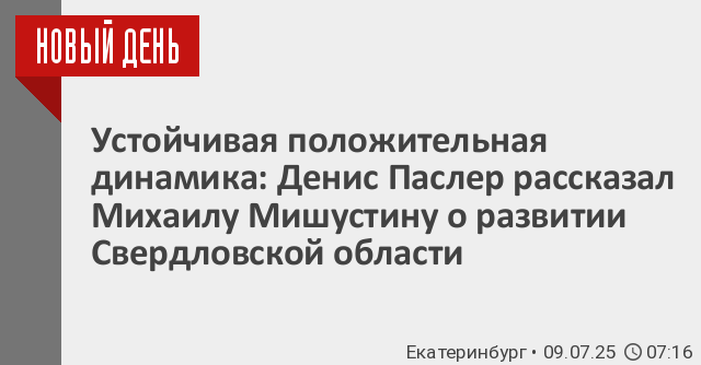 Об этом врио губернатора Денис Паслер доложил председателю правительства Михаилу Мишустину, который 8 июля прибыл в Екатеринбург для работы на площадке Международной промышленной выставки «Иннопром-2025».