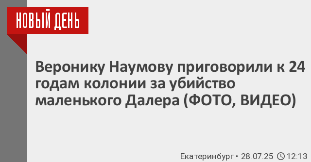 Как передает корреспондент РИА «Новый День», Наумову приговорили к 24 года колонии общего режима. Племянника Наумовой Даниила Егольникова, который принимал участие в истязании мальчика, приговорили к 5 годам колонии.