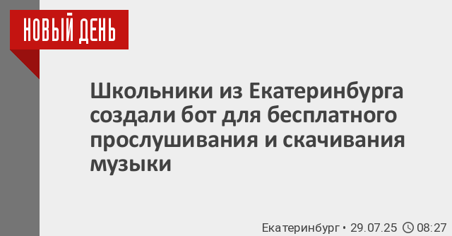 Школьники из Екатеринбурга разработали музыкальный бот в Telegram, который позволяет слушать и скачивать музыку, а также делиться треками в любом чате без перехода на сторонние платформы. Кроме того, сервис предлагает бесплатное прослушивание музыки без рекламы.
