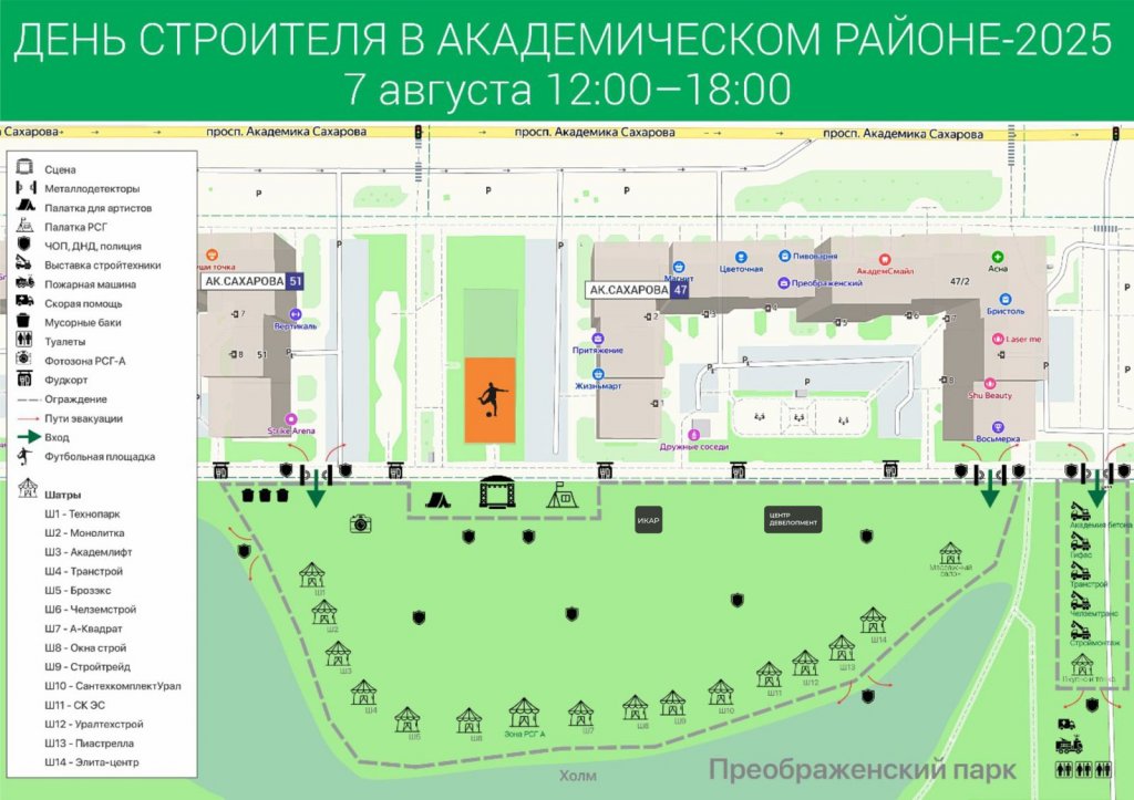 В Преображенском парке в Екатеринбурге 7 августа пройдет праздник, посвященный Дню строителя, и приглашают всех жителей города. Мероприятие пройдет с 12 до 18 часов.