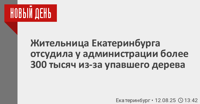 С администрации Ленинского района Екатеринбурга и МБУ ДЭУ Ленинского района взыскали более 300 тысяч рублей за падение дерева на машину, сообщили в пресс-службе Свердловского областного суда. В июле 2023 года на улице Чайковского дерево упало на автомобиль Сhery Tiggo. Владелица машины направила жалобу в администрацию города, но ответа не получила. Тогда она подала иск в суд, который постановил взыскать с администрации района и дорожно-эксплуатационного управления Ленинского района более 300 тысяч рублей.