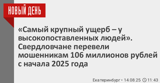 Самый крупный ущерб от мошенничества, зарегистрированный в Екатеринбурге – 18 миллионов рублей. Женщина продала квартиру в центре города за 12 миллионов (хотя рыночная стоимость недвижимости оценивалась в 25 миллионов) и перевела мошенникам еще 6 миллионов из своих сбережений.