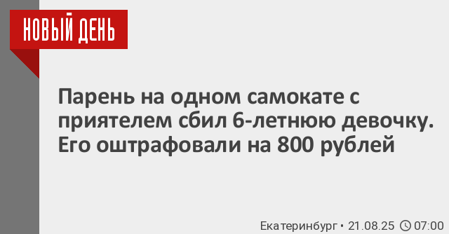 20 июля в Нижнем Тагиле 28-летний мужчина на электросамокате с двигателем мощностью 450 Вт сбил 5-летнюю девочку, ребенок попал в больницу.