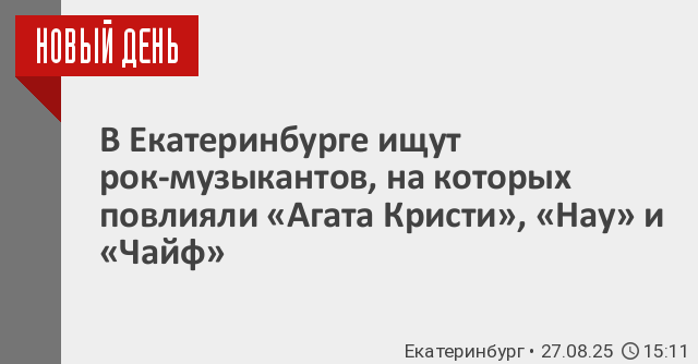 Администрация Екатеринбурга приглашает рок-музыкантов для участия в творческом проекте, посвященном Уральскому року. Проект станет новой возможностью заявить о себе и познакомить большую аудиторию со своим творчеством. Как сообщили в мэрии, для участия в проекте приглашают группы, на творчество которых повлияли «Агата Кристи», «Настя», «Наутилус Помпилиус», «Смысловые Галлюцинации» и «Чайф». Для участия необходимо до 5 сентября заполнить анкету. По всем возникшим вопросам можно обратиться в администрацию Екатеринбурга по телефону: +7 (343) 304-32-12, или написать письмо на электронную почту: nesytykh_ma@ekadm.ru.