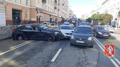 Сразу шесть автомобилей столкнулись сегодня около 9:30 утра недалеко от перекрестка улиц Малышева и Вайнера, сообщает пресс-служба ГАИ Свердловской области.
