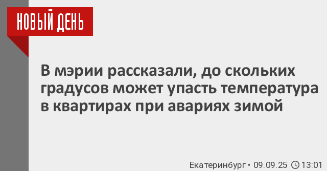 В Екатеринбурге администрация города утвердила документ, который определяет порядок действия при авариях в сфере теплоснабжения зимой. В частности, в нем разъясняется, насколько может упасть температура внутри жилых помещений пока длится ремонт, если случилось ЧП на сетях или в котельной.