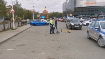 Сегодня в 8-15 утра на улице Ясной, 2 в Екатеринбурге школьник на самокате попал под машину.