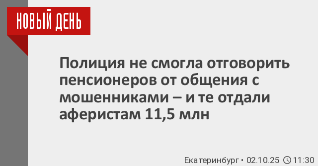В Екатеринбурге пара пожилых людей отдала мошенникам 11,5 млн рублей, продав квартиру по указке аферистов, представлявшихся силовиками. Примечательно в этой истории то, что настоящие полицейские несколько раз отговаривали чету от опрометчивого шага буквально в последний момент и убеждали не переводить деньги мошенникам, однако история все равно закончилась печально.
