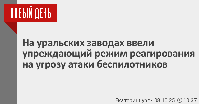 Ряд предприятий Свердловской области ввели упреждающий режим реагирования на угрозу атаки БПЛА, предусматривающий эвакуацию работников. На каждом производстве утвержден собственный алгоритм действий для соответствующих ситуаций, сообщает департамент информполитики.