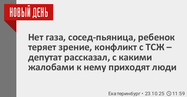 «Анастасия Леонидовна живет на Эльмаше по улице Кобозева. В ее доме нет газа с 23 августа, – рассказал об одной из обратившихся Алексей Вихарев. – Из-за того что сосед-пьяница не пустил на проверку в свою квартиру сотрудников газоснабжающей организации, газ отключили всему подъезду. Такая уж практика. В многоквартирном доме проживают пожилые люди, инвалиды, семьи с детьми, отсутствие газа для всех – большая проблема! Люди элементарно не могут приготовить себе поесть! Написал запрос в «Екатеринбурггаз». Газовики пошли навстречу, совместно с управляющей компанией повторно сходили на проверку квартиры тревожного соседа, осмотрели его газовое оборудование, сделали опрессовку и вернули газ людям!»