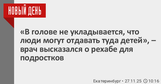 «В голове никак не укладывается, что родители могут отдавать детей, как бы им тяжело ни было, в такие заведения. Ведь работа с детьми – это не просто отдать ребенка куда-то, кому-то, да еще, если мы говорим про такие реабилитационные центры, то работающие там люди в лучшем случае имели опыт употребления психоактивных веществ, а сейчас, соответственно, имеют опыт трезвости – и все. Но с детьми работа – особая. Огромное количество специалистов нужно, чтобы эту работу организовать, начиная от медицинских работников, работников образования, педагогов-психологов, которые работают не только с самим ребенком, но и с семьей», – подчеркнул главный нарколог Минздрава в УрФО Антон Поддубный в своем телеграм-канале.