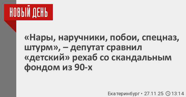 Депутат Свердловского заксобрания Алексей Свалов прокомментировал вчерашнее закрытие частного реабилитационного центра для трудных подростков в поселке Исеть. «События […] напомнили историю примерно 15-летней давности: с нашим борцом «за все хорошее и против всего плохого» – Ройзманом* (иноагент) и фондом «Город без наркотиков». История как под копирку: двухъярусные нары, карантин, наручники. Как итог – побои, реанимация, спецназ, штурм и удивленные лица многих чиновников и силовиков, – вспомнил депутат. – Тогда фонд ГБН за вознаграждение обещал спасти ребенка, и люди иногда действительно отдавали последние деньги в надежде на избавление от зависимости своего чада».