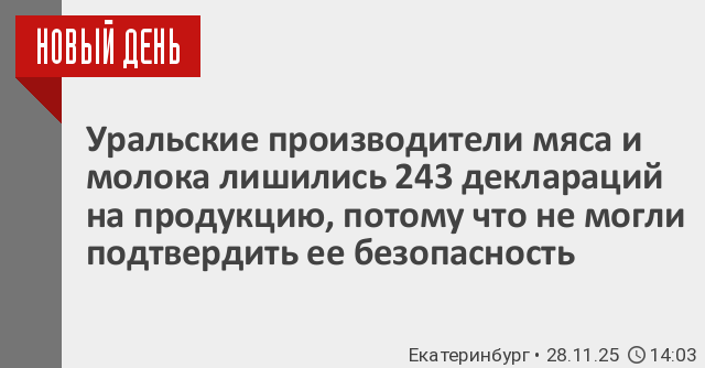 За 11 месяцев 2025 года Уральское управление Россельхознадзора признало недействительными 243 декларации на продукцию животного происхождения местных предприятий. В Курганской области производители мясной и молочной продукции потеряли 35 деклараций, в Свердловской области – 93, в Челябинской области – 115.