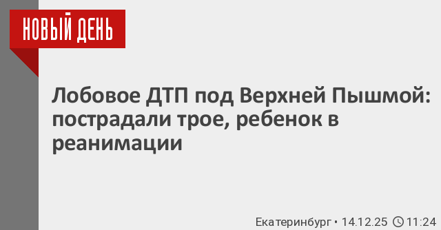 13 декабря в 17:27 на 6-м километре трассы Верхняя Пышма – Невьянск произошло серьезное ДТП. По предварительным данным, 46-летняя женщина, управлявшая автомобилем Toyota, выехала на встречку, где столкнулась с Kia Seltos. В аварии пострадали три человека, включая 10-летнюю девочку. Все пострадавшие госпитализированы, ребенок в тяжелом состоянии находится в реанимации.