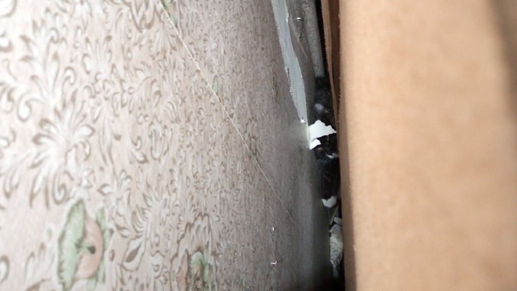 Габаритный шкаф занимал пространство от стены до стены и от пола до потолка. Добраться до животного сбоку было невозможно. Специалисту пришлось разобрать верхнюю секцию мебели, с фонариком он разглядел питомца у самого пола. С помощью домкрата он отодвинул шкаф и через зазор попытался достать кошку удочкой. Это удалось лишь тогда, когда животное само ухватилось за инструмент.