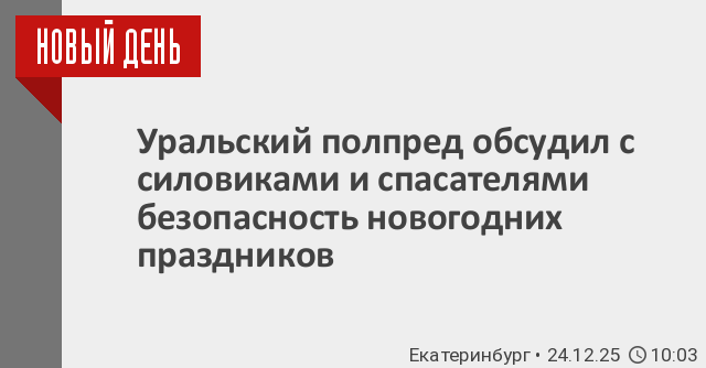 Полномочный представитель Президента России в Уральском федеральном округе Артём Жога провёл совещание по обеспечению общественной безопасности и правопорядка в новогодние праздники. В совещании участвовали представители власти субъектов Уральского федерального округа, правоохранительных органов, профильных структур, сообщили «Новому Дню» в пресс-службе уральского полпредства.