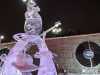 Входные группы в ледовый городок стилизованы под рокерскую «козу». Рядом с елкой на светящихся подиумах расположился «Рок-квартет»: четыре снеговика-музыканта с аккордеоном, контрабасом, клавитарой и балалайкой. Тут же по традиции находятся фигуры Деда Мороза и Снегурочки, а неподалеку от них ледовая скульптура лошади – символа наступающего 2026 года. Прогулочная зона состоит из четырех светящихся арок, по краям которых стоят огромные рокерские снеговики – с круглыми черными очками и бандами, как и полагается.