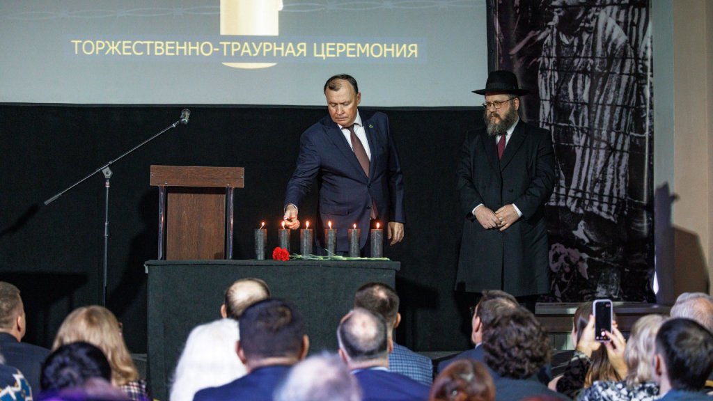 Глава Екатеринбурга зажег шесть свечей памяти, а главный раввин Екатеринбурга и Свердловской области Зелиг Ашкенази произнес поминальную молитву «Кель Мале Рахамим».