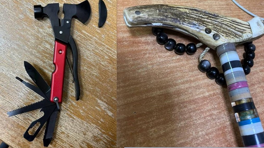 Пожилые женщины иногда приносят в суд спицы для вязания, мужчины – ящики с инструментами (в одном, например, лежали молоток, пила, отвертки), также были изъяты трость, в которой скрывался нож, и ручка-нож.