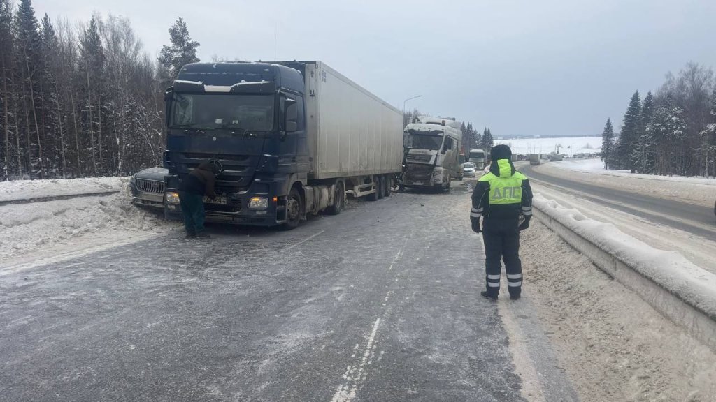 На трассе Пермь-Екатеринбург в Нижнесергинском районе столкнулись два грузовика и легковой автомобиль. Из-за ДТП перекрывали движение в строну Екатеринбурга, сообщили в областной Госавтоинспекции.
