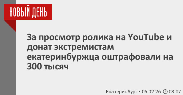 Житель Екатеринбурга получил штраф 300 тысяч рублей за просмотр ролика ФБК (организация признана экстремистской, запрещена в России) на YouTube и донат этой же организации. Об этом сообщили в пресс-службе Железнодорожного райсуда.