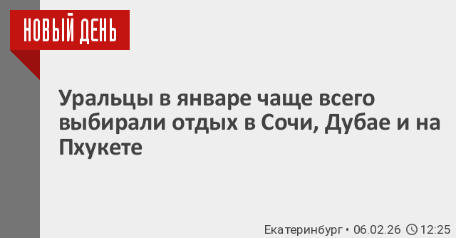Чаще всего в январе пассажиры екатеринбургского аэропорта Кольцово выбирали отдых в Сочи, Дубае и на Пхукете. Наибольший пассажиропоток из Свердловской области принял черноморский курорт – 36 тысяч человек. Туда летели преимущественно любители горнолыжного спорта.