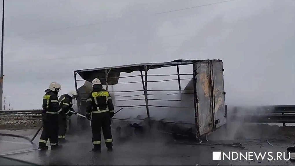 Сегодня днем на Кольцовской трассе загорелся грузовой фургон. На месте ЧП все еще работают пожарные, автомобиль уничтожен полностью.