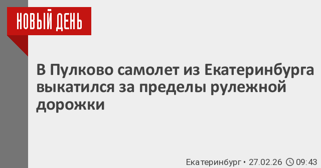 Утром 27 февраля в аэропорту Пулково после посадки самолет рейса Екатеринбург – Санкт-Петербург выкатился за пределы рулежной дорожки.