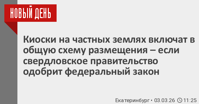 Ситуация может измениться осенью этого года, если свердловское правительство одобрит изменения ФЗ-131. В этом случае муниципалитет получит право вносить киоски на частных землях в общую схему размещения НТО – а значит, контролировать их распространение.