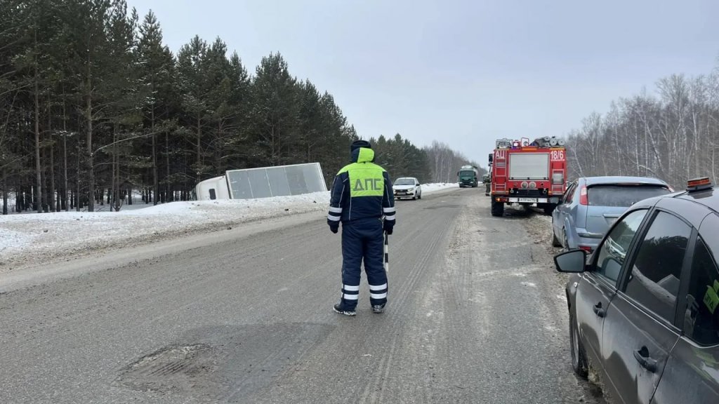 Как сообщили в пресс-службе облГАИ, от удара грузовик съехал в кювет и опрокинулся на бок. На участке дороги временно введено реверсивное движение.