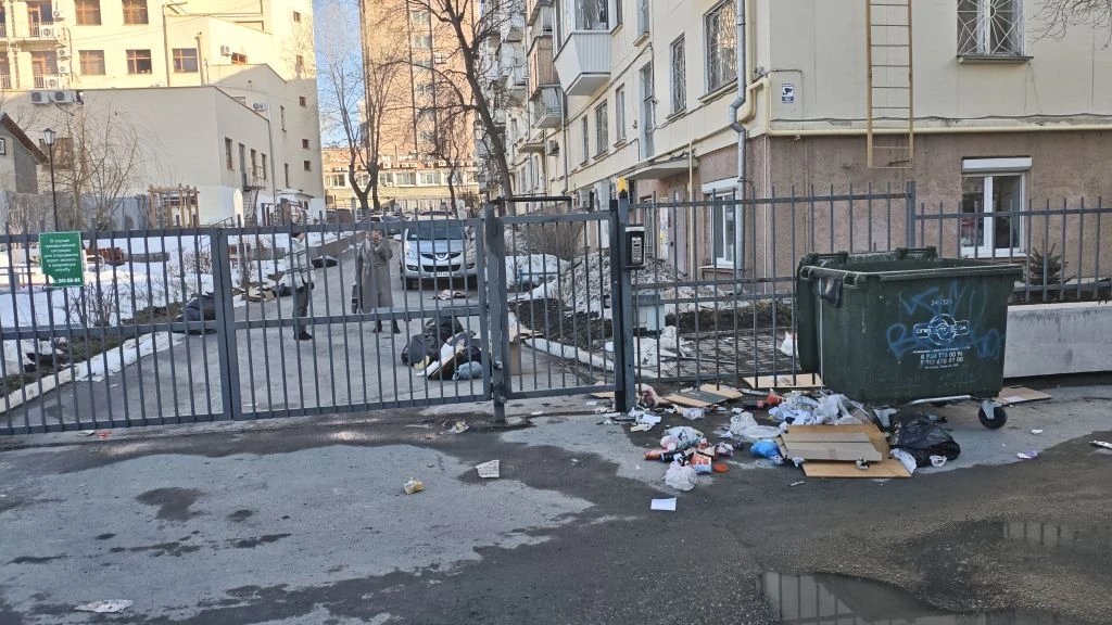 Почти детективная история произошла на днях в центре Екатеринбурга: ночью двор по адресу: ул. Мамина-Сибиряка, 64, оказался забросан мусором, который кто-то выбросил из контейнера.