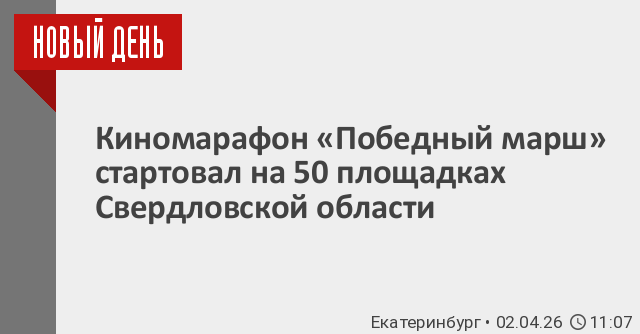 В Свердловской области стартовал киномарафон «Победный марш», зрителям покажут лучшие отечественные художественные и документальные фильмы о Великой Отечественной войне, снятые в последние несколько лет. Показы продлятся до конца июня на территории Среднего Урала, сообщили в ДИПе.