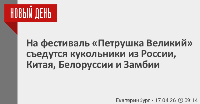 Стали известны участники XIII Международного фестиваля театров кукол «Петрушка Великий», который пройдет в Екатеринбурге с 10 по 14 сентября. Тема фестиваля – «Театр кукол: Новые смыслы».