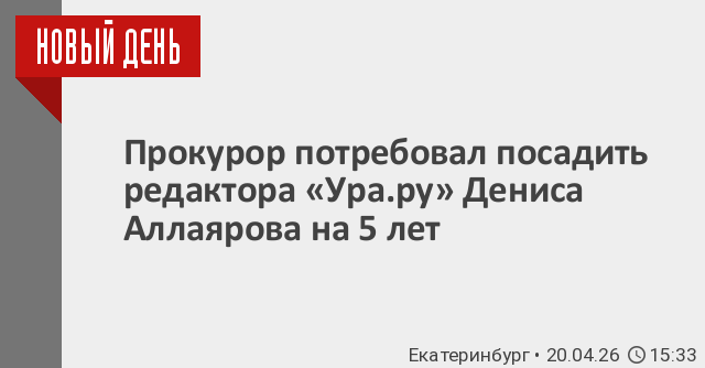 Государственный обвинитель запросил для экс-редактора Ura.ru Дениса Аллаярова 5 лет колонии общего режима, передает корреспондент «Ъ-Урал».