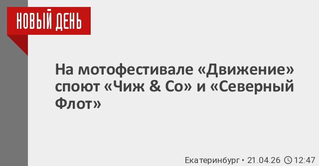 Российские рок-группы «Чиж & Co» и «Северный Флот» станут участниками фестиваля «Движение», который пройдет в Екатеринбурге 5-7 июня.