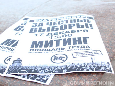 Как передает корреспондент «Нового Региона», очередной митинг против фальсификации результатов парламентских выборов оказался почти столь же многолюдным, как и неделю назад. По разным оценкам, в нем принимали участие от 2,5 до 3 тысяч человек – это тех, кто попал внутрь огражденного полицией периметра. Напомним, так как митинг был согласован, полиция установила рамки металлоискателей и ограждения у памятника Татищеву и Де Геннину, через которые пришлось пройти всем собравшимся на площади Труда. Сразу после прохождения контроля, митингующим раздавали белые ленточки, значки «Верните России честные выборы» и свистки. Многие горожане поддерживали митингующих за ограждениями, автомобилисты, проезжая площадь Труда, где шло мероприятие, сигналили в знак поддержки протестующим.