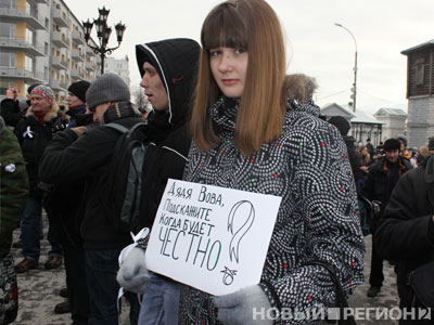 Поскольку митинг 17 декабря, в отличие от акции в прошлую субботу, был санкционирован, сегодня наблюдалось большое количество людей с различными транспарантами. Впрочем, как отмечает корреспондент «Нового Региона», по своему смыслу они укладывались в два посыла – результаты выборов нелигитимны, власть должна смениться.
