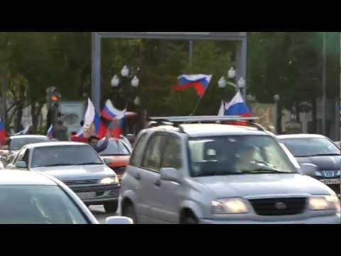 Первыми на улицах города появились фанаты на автомобилях. Сначала в одиночку, а потом уже и спонтанно организованной колонной они объезжали центральные улицы города, громко сигналя. Отметим, что полицейские, дежурившие в центре Екатеринбурга, в основном смотрели сквозь пальцы на мелкие нарушения автомобилистов – тормозили только тех, кто чересчур превышал скорость или забирался на крыши авто. Добавим также, что автопробег продолжался глубоко заполночь, хотя первые празднующие появились на улицах в районе 9 часов вечера.