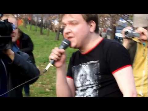 После он, вырвав микрофон из рук одного из тележурналистов, выкрикнул «Свободу Pussy Riot!», и cообщил, что наказание девушкам из группы, по его мнению, слишком сурово, и Русская православная церковь должна была проявить сострадание. «Пусть девушки повели себя гадко, но они не украли, они не убили. Нельзя людей наказывать за их ценности – это возврат к инквизиции», – заявил пьяный колдун.