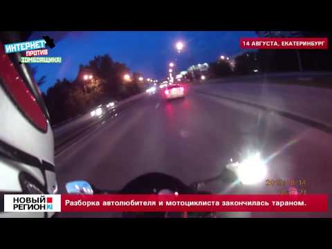 Екатеринбуржцы обсуждают видеозапись дорожного инцидента, который произошел минувшей ночью в микрорайоне ЖБИ. Съемка производилась с видеорегистратора, прикрепленного к шлему мотоциклиста-участника стычки. По его словам, он и его товарищ, так же управлявший мотоциклом, двигались по улице Малышева в сторону ЖБИ. «Авто, не глядя в зеркала, объехал помеху, немного помешав мне. Я посигналил. На что он показательно вильнул в меня. Догнав его, я показал ему знаками «Зачем ты это делаешь?». Он сделал это еще раз. После чего мне захотелось поговорить с ним. Я перестроился перед ним и жестами и словами показывал, чтоб он остановился. Вместо этого он «урвал момент» (ожидал я, что он справа уедет) и ушел вперед. Далее, нарушая все правила, выехал на Сыромолотова. Я решил, что нужно лишь ехать за ним, ожидая остановки. Далее был красный сигнал светофора. Я поставил мотик на подножку и подошел к нему, – пишет один из участников инцидента на форуме «Мотоклуб» портала е1 под ником «Kadet». – Постучал пару раз по стеклу, чтоб он выходил, но вместо этого человек отъехал вперед, врубил заднюю передачу и с разгона врезался в меня».