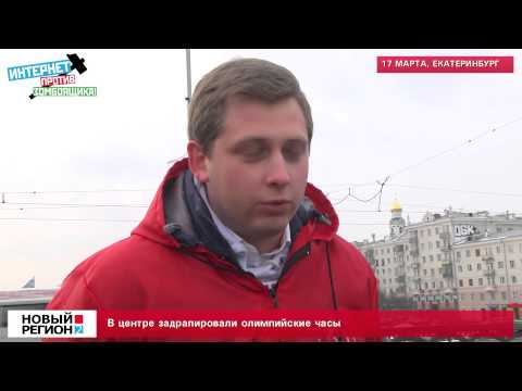 В Екатеринбурге Олимпийские часы прикрыли пропагандистским полотном.
