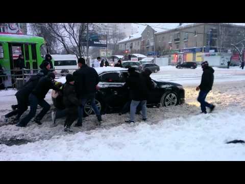 Не легче ситуация была и в городах. В Екатеринбурге то и дело забуксовывали машины и даже автобусы, которые из снега приходилось выталкивать пешеходам, водителям и пассажирам. Например, такой казус произошел на перекрестке Малышева – Комсомольская.