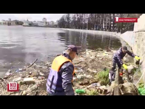 В Екатеринбурге рабочие должны к майским праздникам очистить Исеть от мусора. Руками и специальными сачками они выуживают из воды крупные ветки деревьев, автомобильные покрышки и горы бутылок. За час работы сегодня набралось 20 мешков мусора.