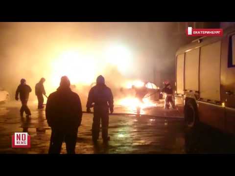 Этой ночью в Екатеринбурге на улице Куйбышева загорелись припаркованные машины. Три автомобиля огнем уничтожены полностью.