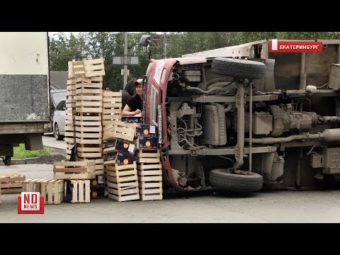 В Екатеринбурге перевернулся грузовик, перегруженный фруктами и овощами.