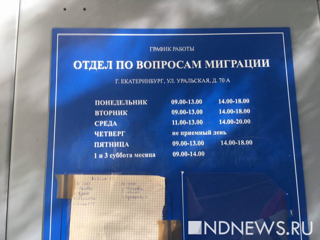В 11:10 Сергей мне радостно пишет: «Очень быстро очередь движется, сейчас уже наша подойдет!" Радость продлилась недолго. Спустя пять минут он кидает мне фото с подписью «вместо 1000 слов». На фото – график работы кабинета, понедельник, вторник, пятница. Бывшие сотрудники ФМС, а ныне МВД, не сочли нужным повесить это объявление снаружи. «На меня вылился поток сознания раздраженной по жизни женщины. В нем читалось только: «Задолбали сюда ходить, читать не умеете, сдохните все!» – описал товарищ.